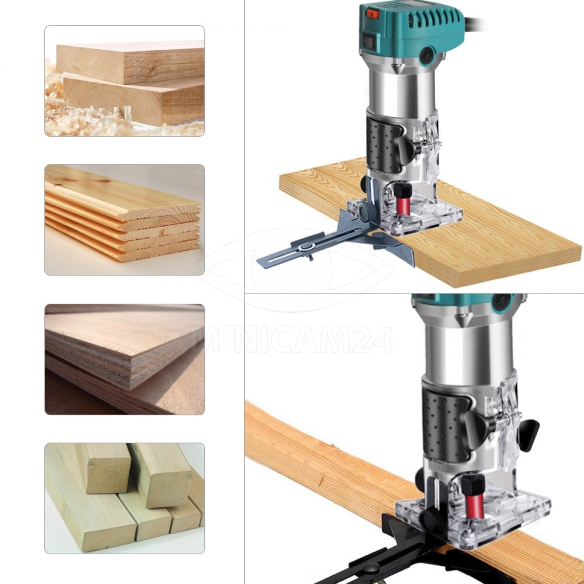 Фрезер ручной по дереву электрический MOYI 800W применяется для изготовления плинтусов и карнизов, создания отверстий в древесине, вырезания узоров и рисунков. Ручной фрезер по дереву работает в 6 скоростных режимах с максимальным числом оборотом 30000 об/мин. Ручка фрезера имеет нескользящее прорезиненное покрытие, поэтому работа будет комфортной и безопасной. Мотор защищен от перегрева. Благодаря прозрачной основе можно наблюдать за процессом обработки древесины. Фрезер ручной электрический имеет водо- и пыленепроницаемый корпус, поэтому отлично подойдет во время ремонтных и строительных работ.