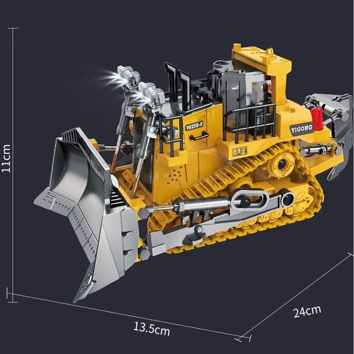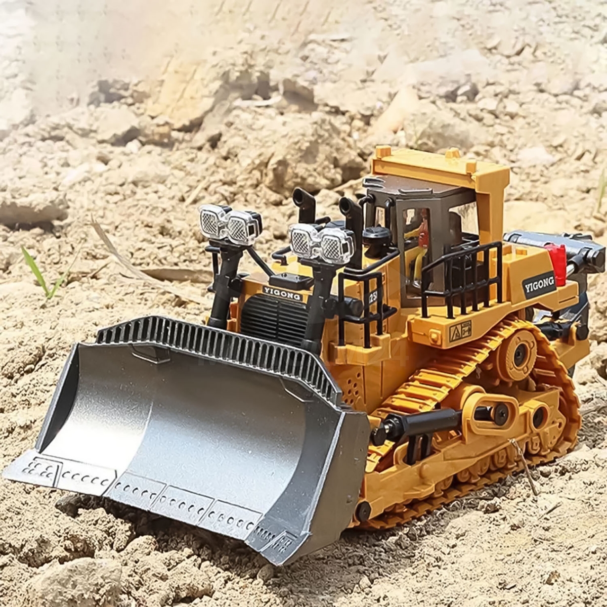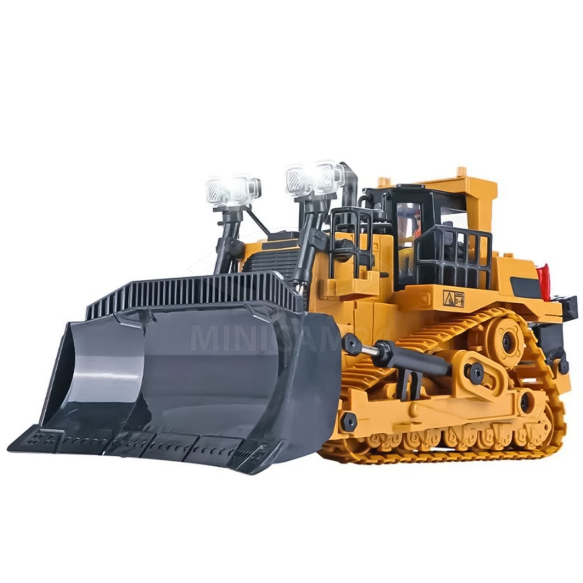 Управление бульдозером должно осуществляться исключительно посредством пульта. Не рекомендуется управлять бульдозером руками, а именно: катать, изменять положение механических частей (ковша, гусениц), т.к это может привести к повреждению механизмов игрушки.