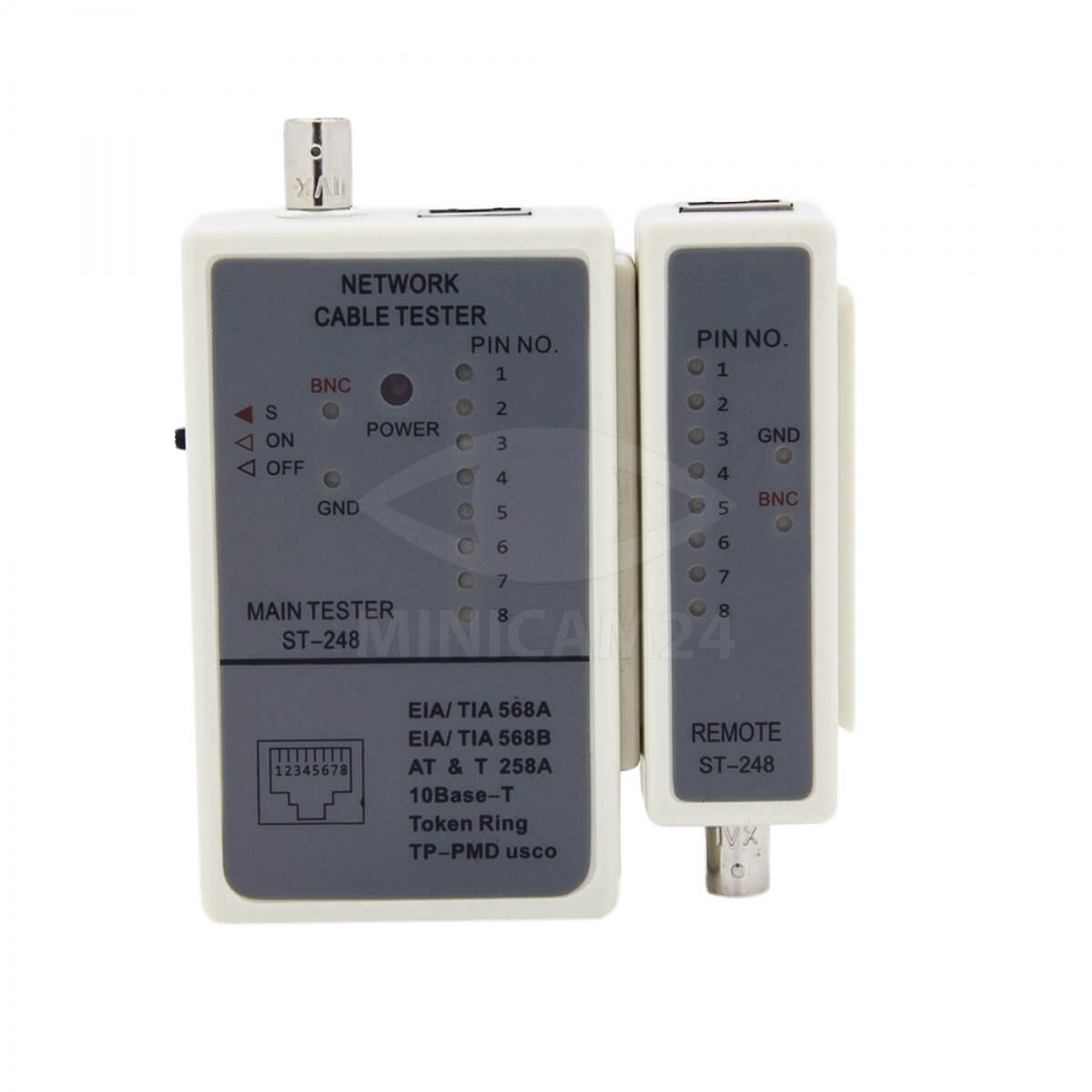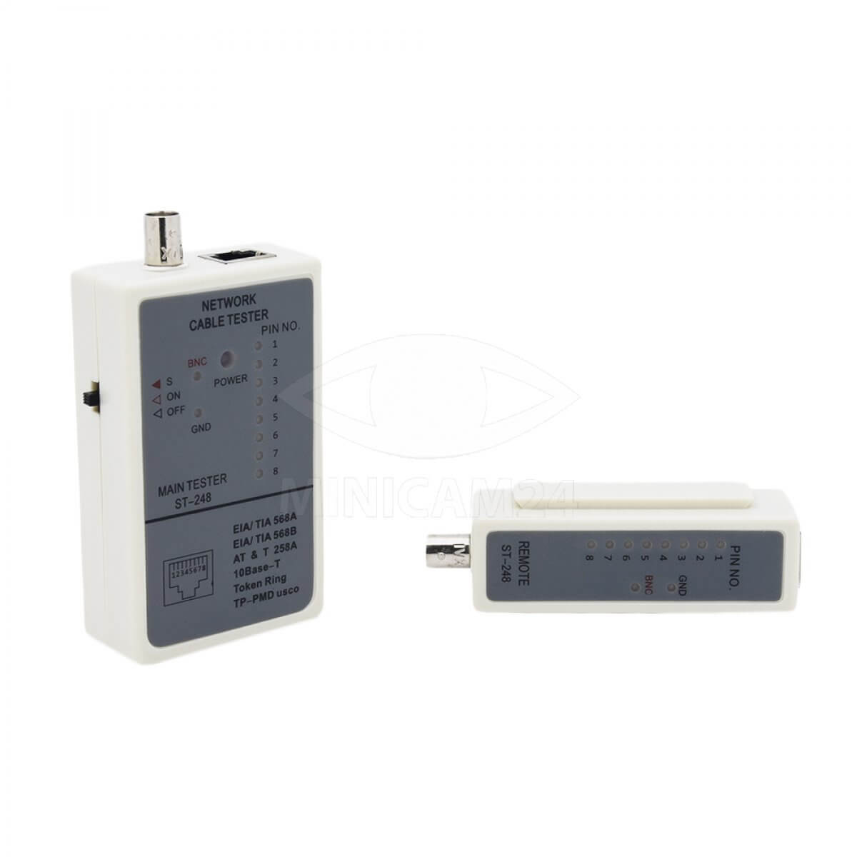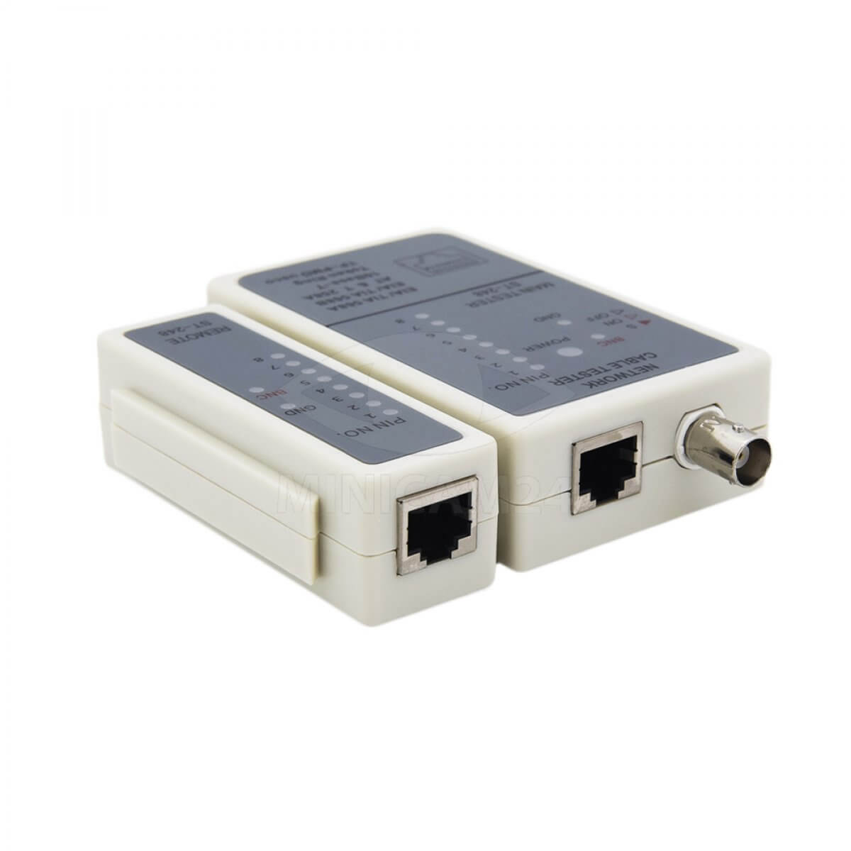 Используется для тестирования электролиний с коннекторами типа BNC, RJ-45. Инструмент способен определить исправность или неисправность провода. Тестер витой пары состоит из двух частей: генератора сигнала и детектора приемника. Прибор позволяет проверить правильность соединений и найти механические повреждения коаксиального и телефонных проводов. Максимальная длина исследуемого участка - 305 метров.