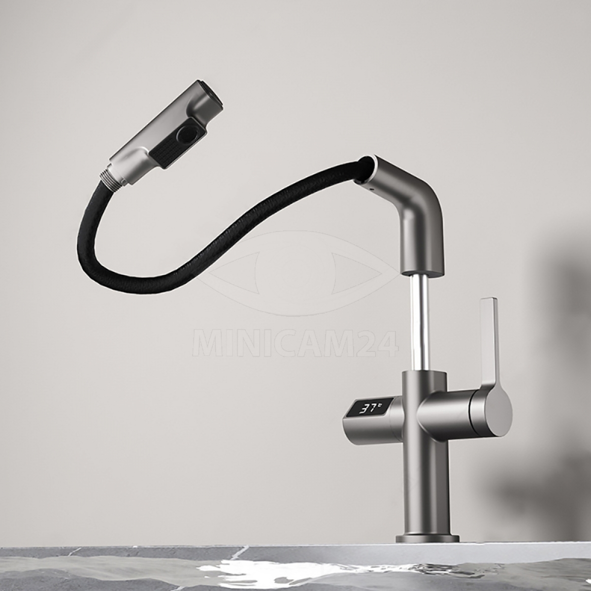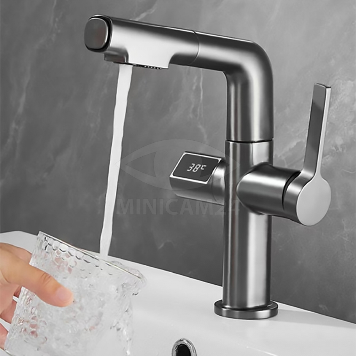 Смеситель для раковины с ЖК-дисплеем и выдвижной лейкой Permanence, серый