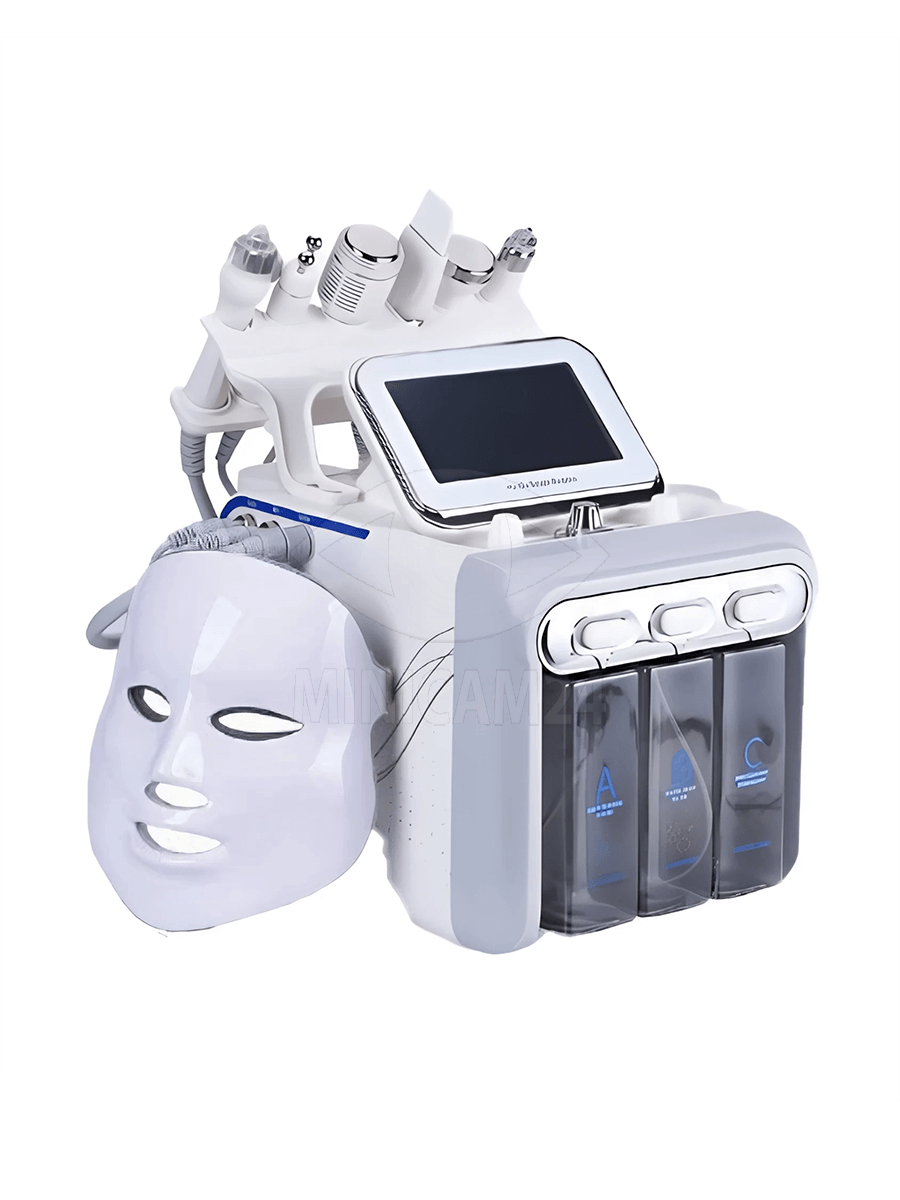 Аппарат гидропилинга VitaLuce 7 в 1 объединяет семь уходовых процедур в одном устройстве. Он оснащён LED-маской, вакуумным гидропилингом, функцией фонофореза, ультразвуковым пилингом, RF-лифтингом, водородным очищением и криотерапией. Такой набор позволяет выполнять как поверхностные, так и более глубокие процедуры ухода за кожей, комбинируя очищение, тонизацию и стимуляцию регенерации.